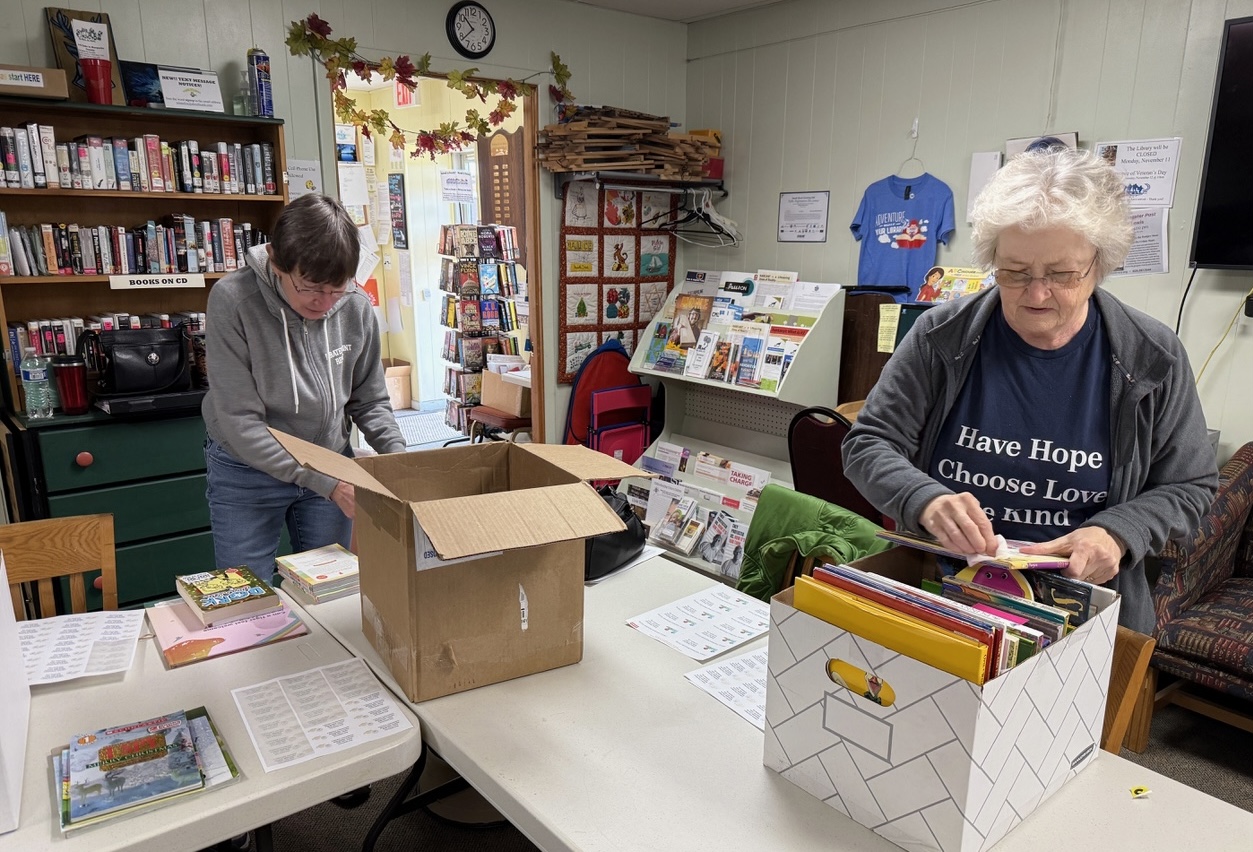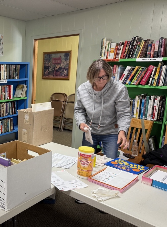 The LVMC annual Tots to Teens Book Drive collected about 1000 donated books from drop-off points at county libraries, schools, and churches. The book giveaway was held in conjunction with the Giving Tree program on Saturday morning, December 14th, at Trinity Methodist Church in Montello. Board members cleaned, sorted, and labeled books at our December board meeting and new graphic novels were purchased to add to the donations.