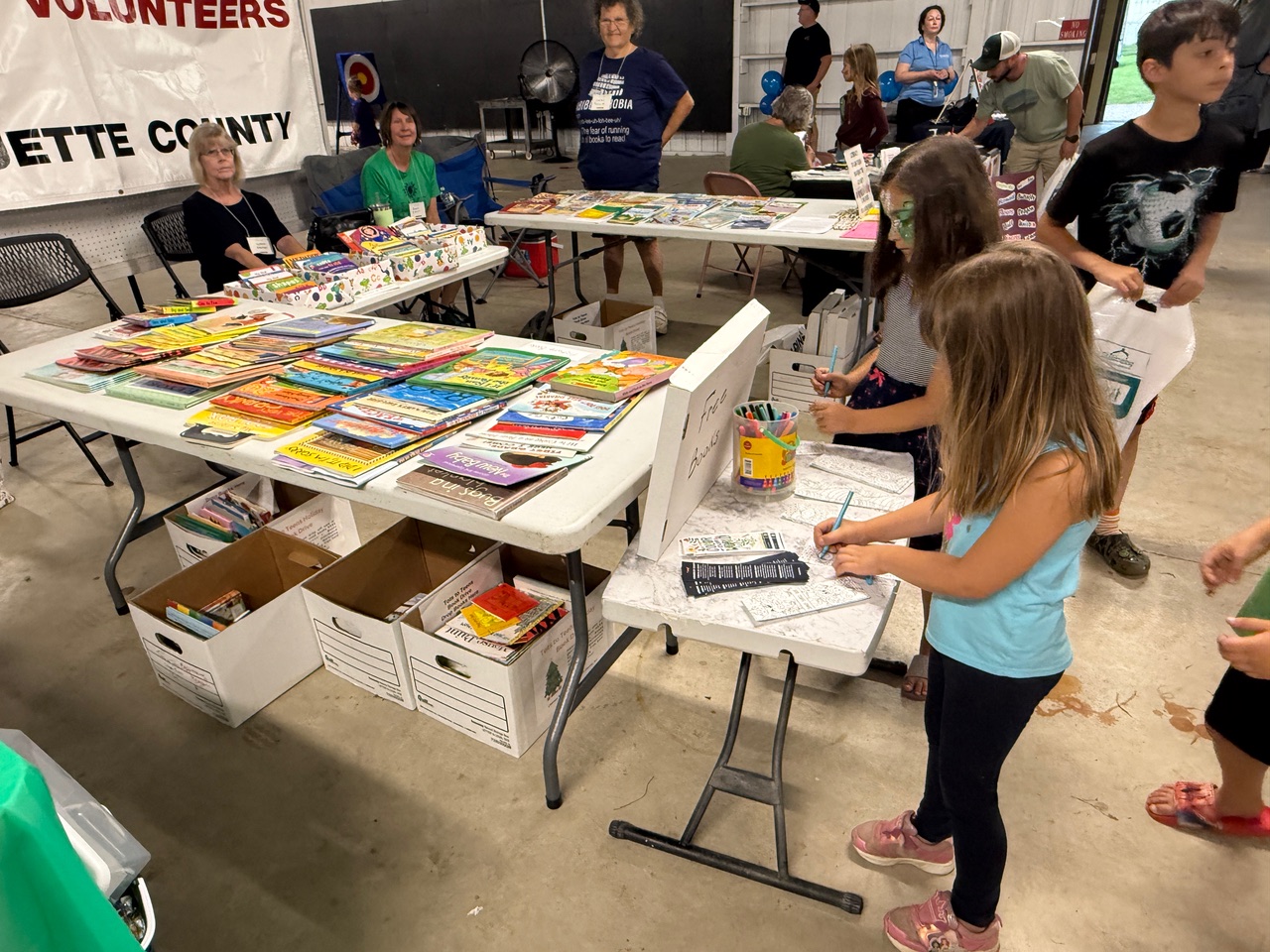 Touch a Truck was Saturday, August 16 and many families braved the rainy weather to attend. Mary Faltz, Cathy Puccia, Dawn Renz and LuAnn Zieman manned the LVMC booth and gave away almost 70 books to eager readers.